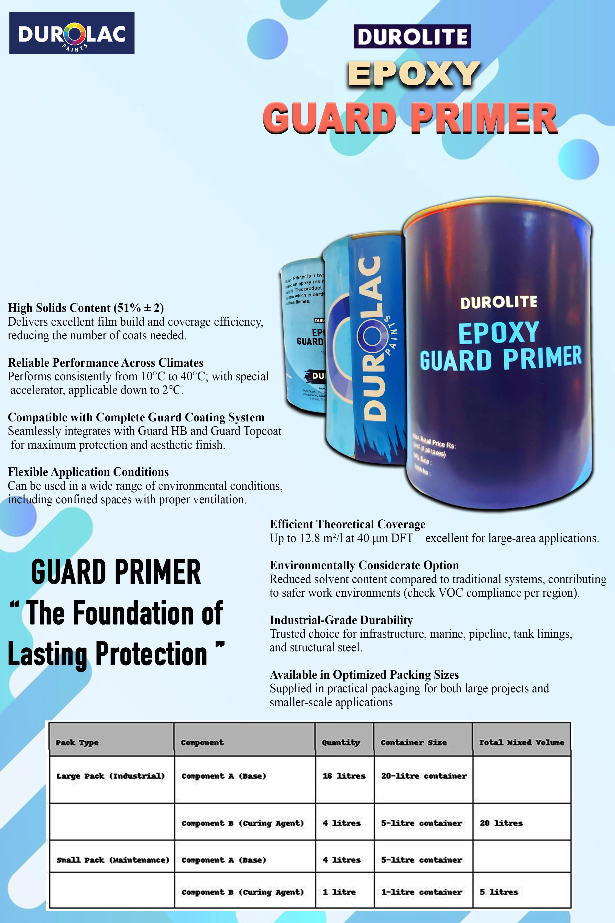 High Solids Content (51% ±2) Delivers excellent film build and coverage efficiency, reducing the number of coats needed. Reliable Performance Across Climates Performs consistently from 10°C to 40°C; with special accelerator, applicable down to 2°C. Compatible with Complete Guard Coating System Seamlessly integrates with Guard HB and Guard Topcoat for maximum protection and aesthetic finish. Flexible Application Conditions Can be used in a wide range of environmental conditions, including confined spaces with proper ventilation.